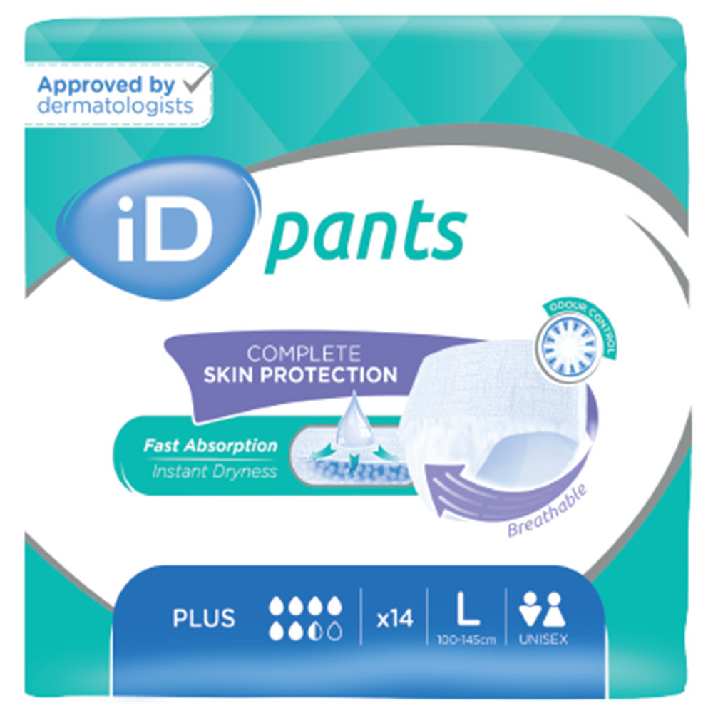 Avec sa forme étudiée, son tampon ultra-absorbant, ses barrières latérales anti-fuites et son système "Odour Control" pour neutraliser les odeurs déplaisantes, la protection pour adultes incontinents ID Pants Plus permet de garder sa liberté de mouvement et son indépendance, pour profiter de la vie sans arrières pensées.